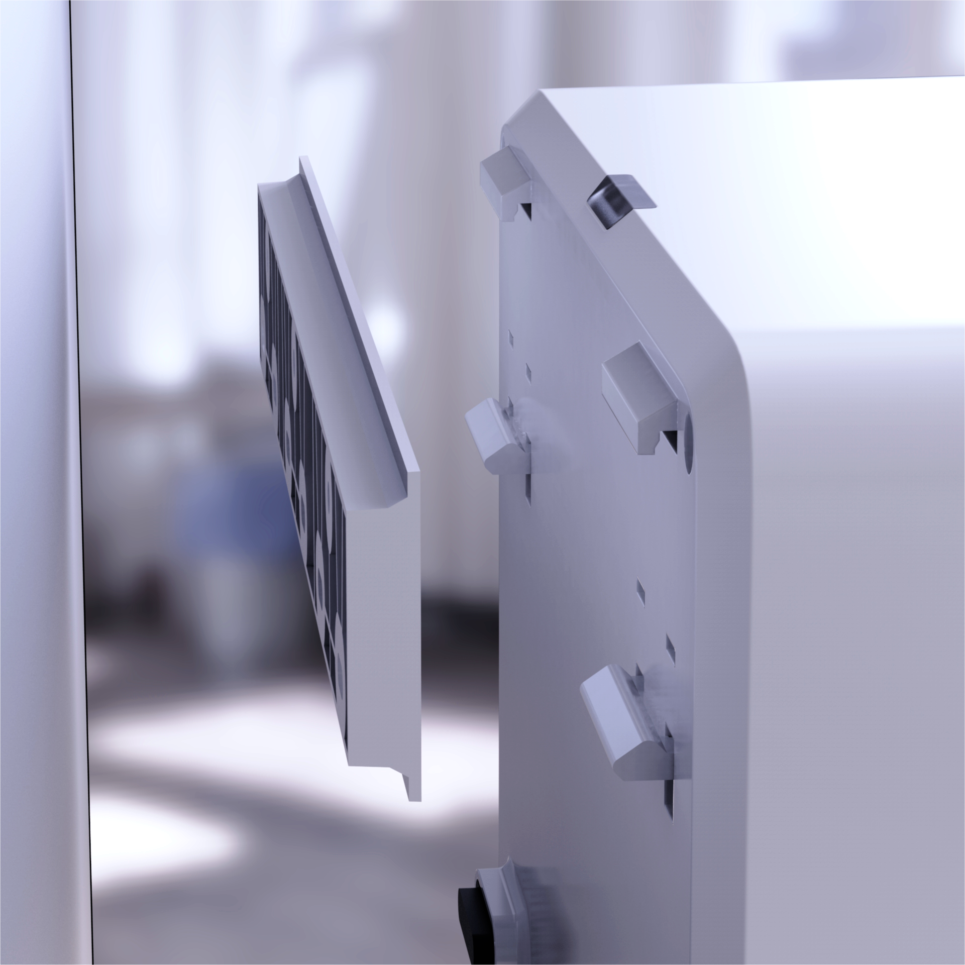 Um den Bedürfnissen von Aquarianern gerecht zu werden, haben wir die Methode zur Aufhängung von Geräten verbessert. Die neuesten Geräte von Reef Factory verfügen über ein innovatives Montagesystem auf Basis der DIN-Schiene. Dies ist eine unglaublich bequeme und flexible Lösung, die dabei hilft, Ordnung im Schrank zu halten.