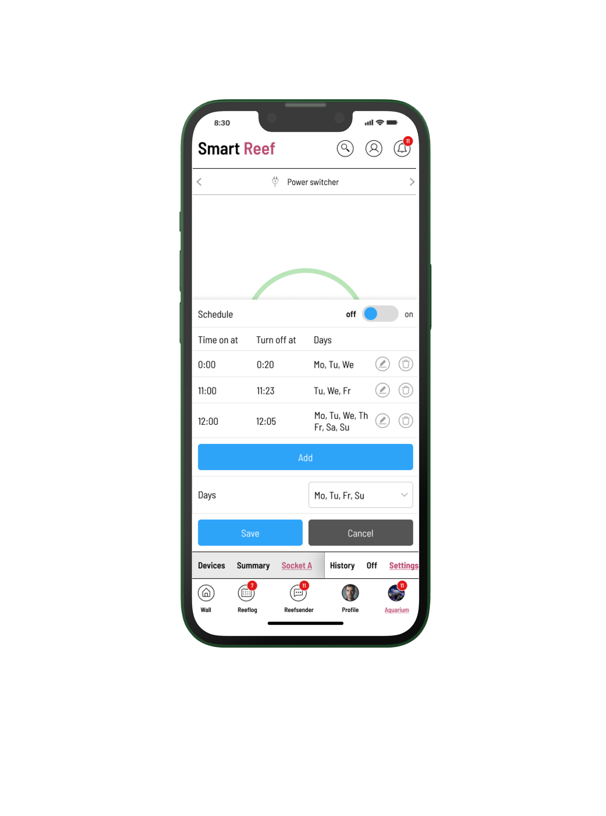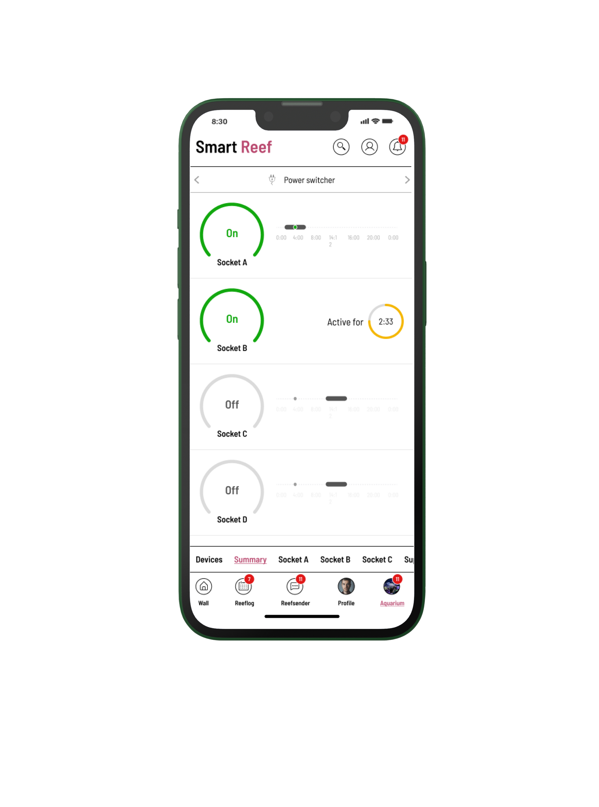 Mit dem Power Switcher X4 können Sie jede Riffaquarienausrüstung in ein intelligentes Gerät verwandeln und über die Smart Reef-App fernsteuern. Umwälzpumpe, Skimmer, Beleuchtung und sogar Pumpen – alles kann jetzt Teil Ihres Smart-Home-Ökosystems werden.