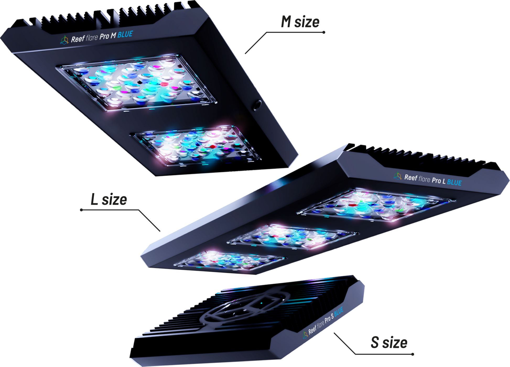 ● Reef flare Pro Blue M – Abdeckungsbereich bis zu 90 x 70 cm (35 x 27,6 Zoll), Tiefe von bis zu 70 cm (27,6 Zoll) und mehr.