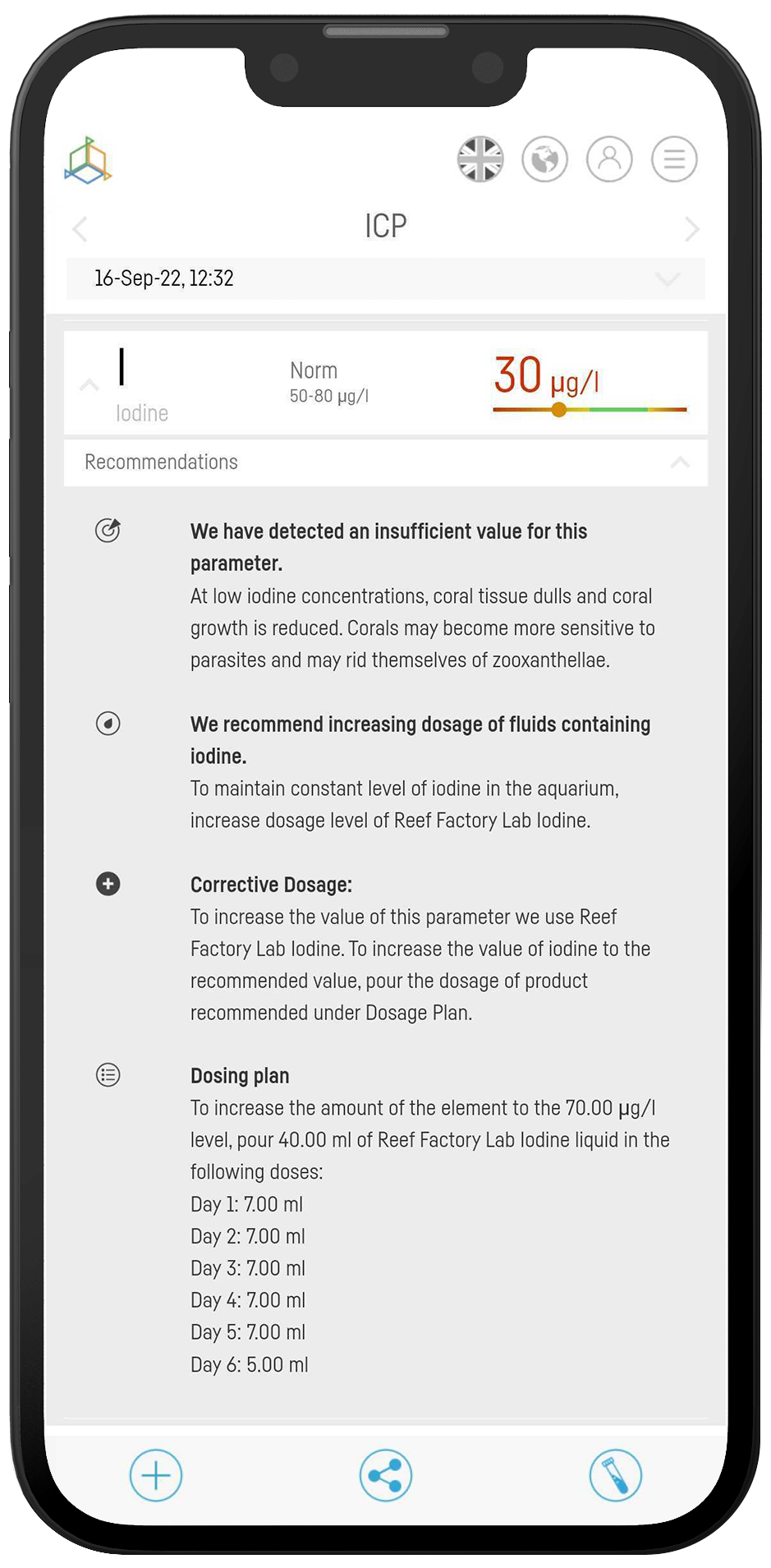 Mit Smart Reef sind Probenregistrierung, Testergebnisse und Dosierungsempfehlungen an einem Ort verfügbar.