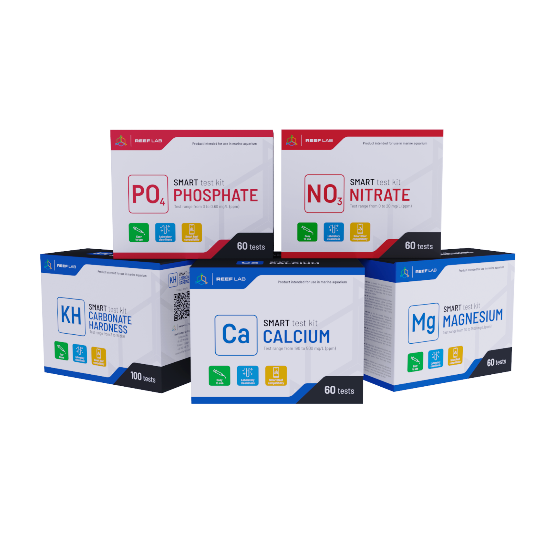 Reef Factory Smart Test Kit 5er Set KH, Ca, Mg, PO4, NO3