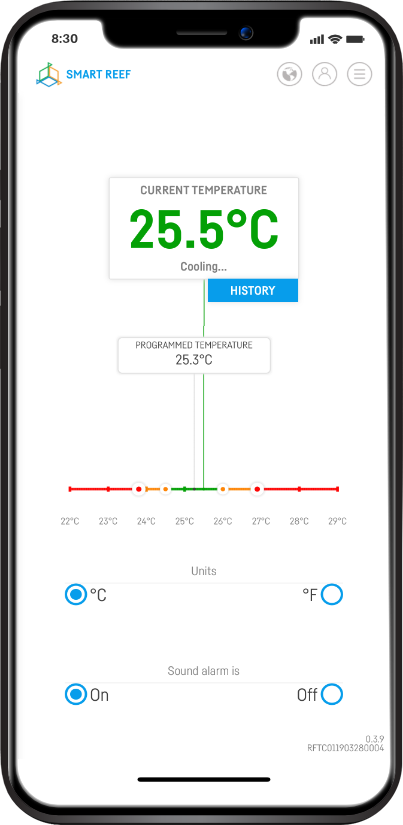Wenn Sie das Gerät mit dem Smart-Reef-System verbinden, erhalten Sie SMS-, Push- oder E-